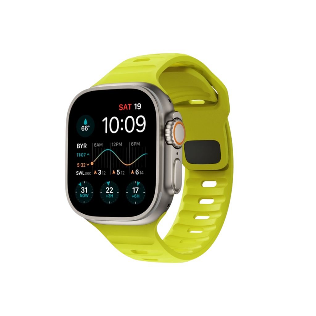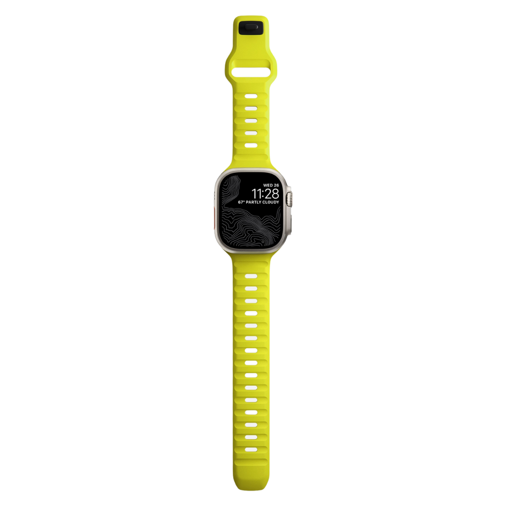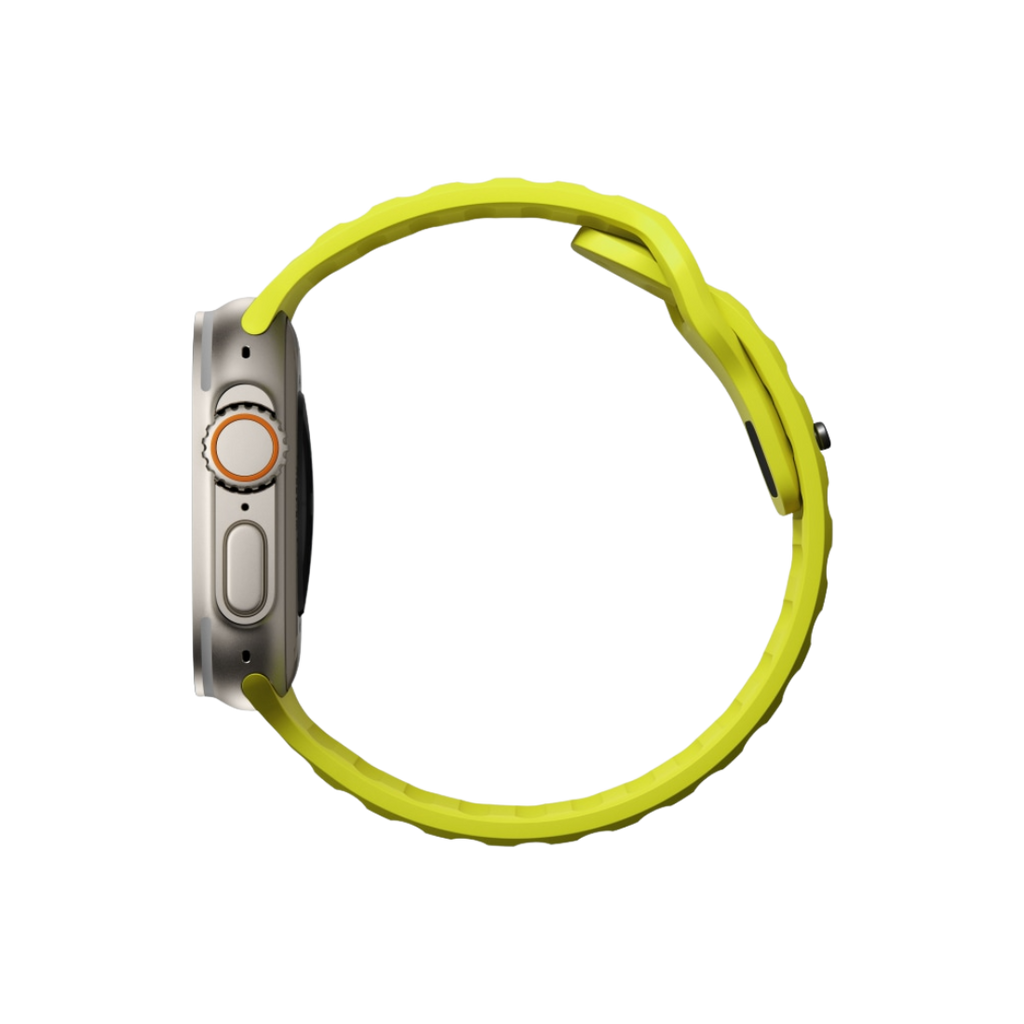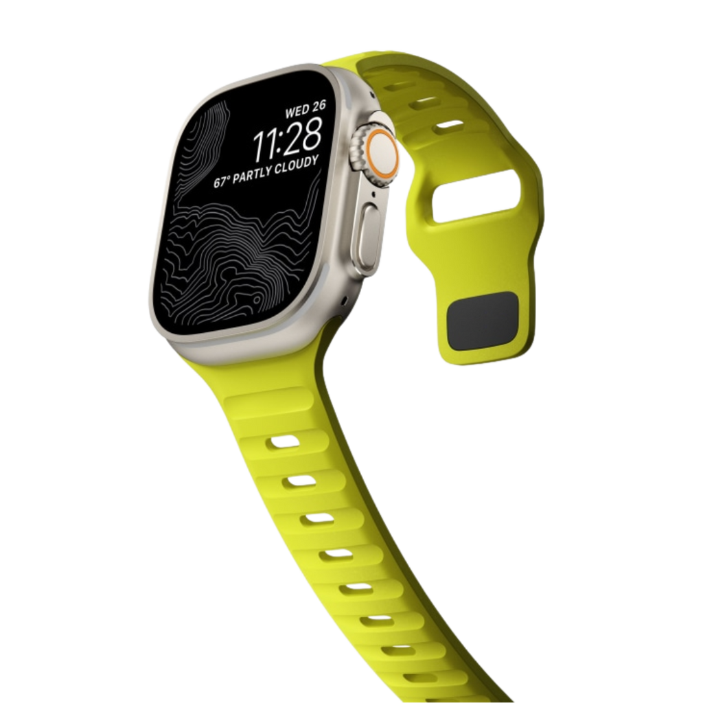 Projetado para dar ao seu Apple Watch uma aparência atlética moderna e elegante para exercícios intensos e uso diário. A Pulseira Sport Band tem um design leve e respirável que é construído a partir de uma borracha FKM macia e flexível para conforto durante todo o dia. Um mecanismo de pino e dobra de baixo perfil garante um fechamento seguro.