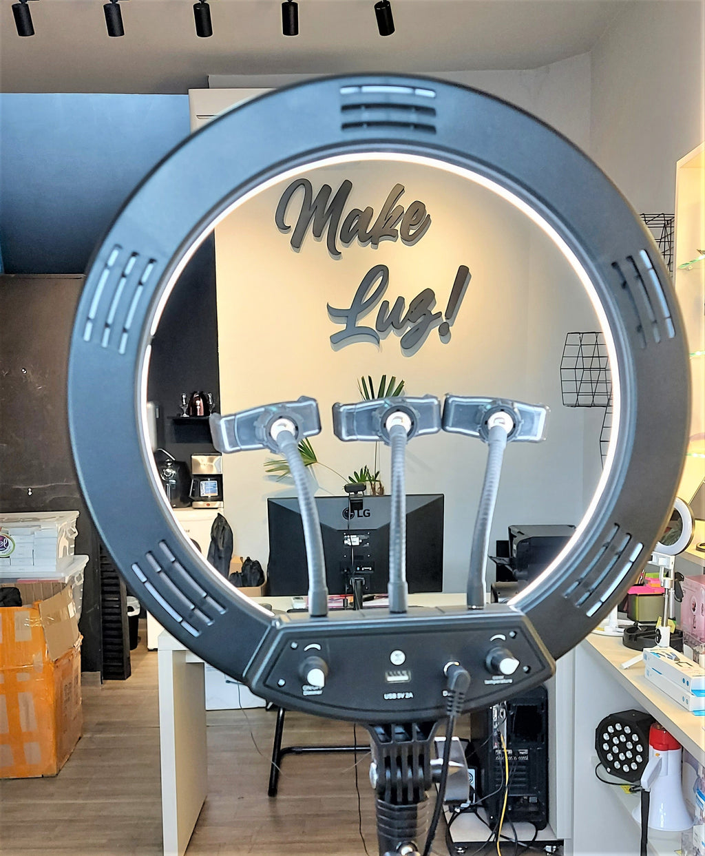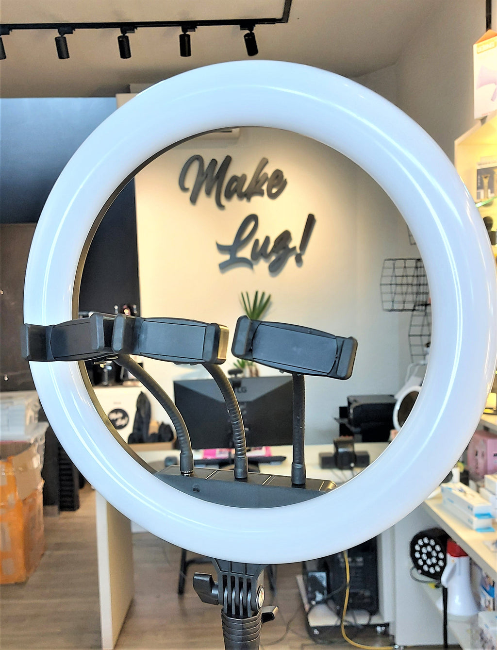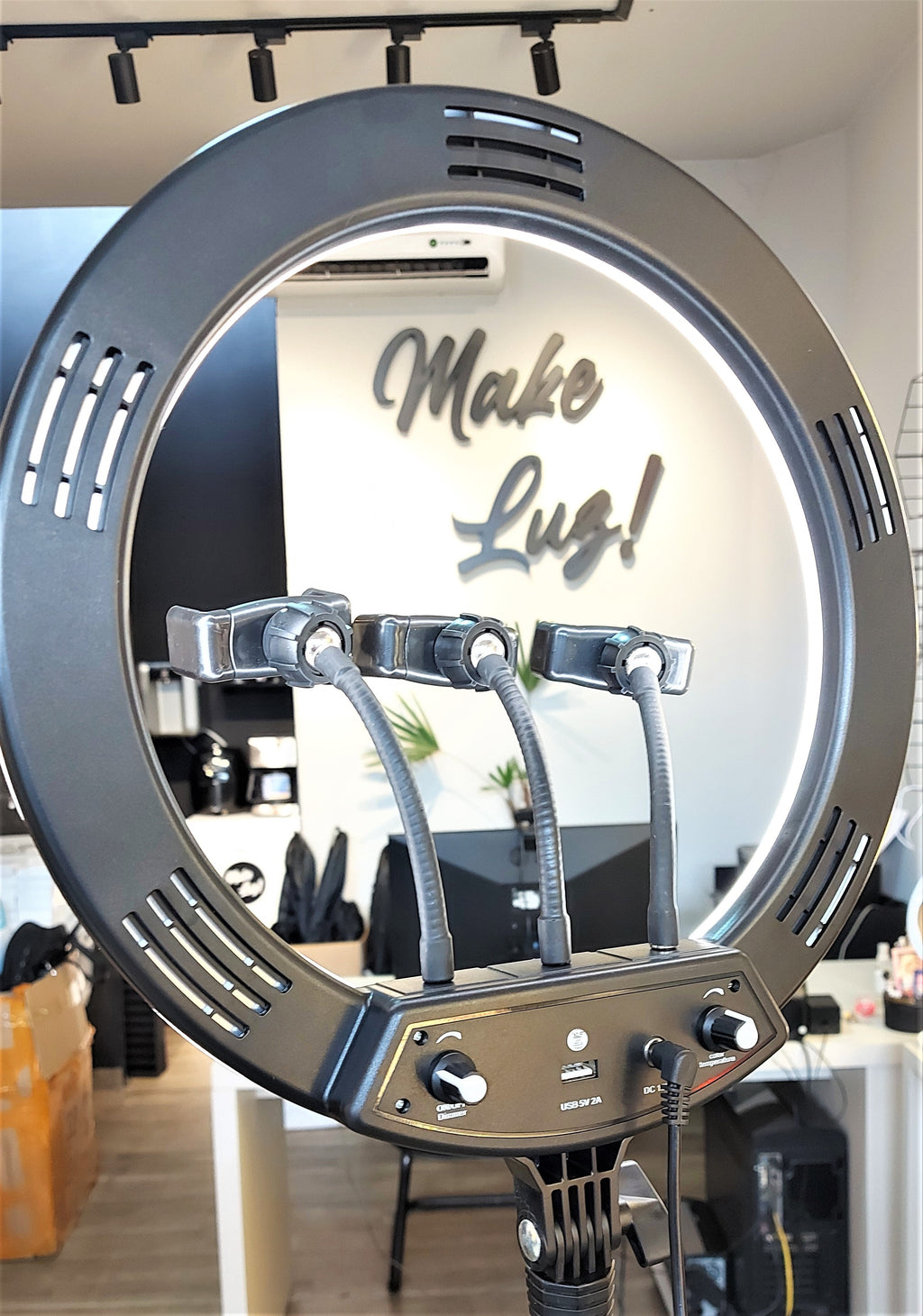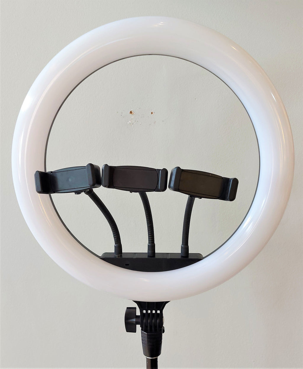 O suporte de celular centralizado na ring light ajuda na distribuição correta de iluminação para sua foto ou vídeo! Além de ter um material resistente que suporta todos os pesos e tamanhos de celulares, o suporte é totalmente articulável! Você poderá escolher entre usar o celular na horizontal ou vertical! O cabo flexível permite qualquer tipo de angulação!